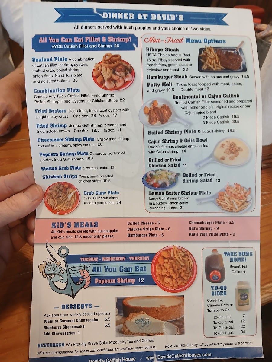 The friendly staff, highlighted by patrons like Minnie Keller and Ricky Sikes, enhance the experience with their attentive and accommodating service. For anyone craving delicious seafood in a warm atmosphere, David's Catfish House is simply unmissable.